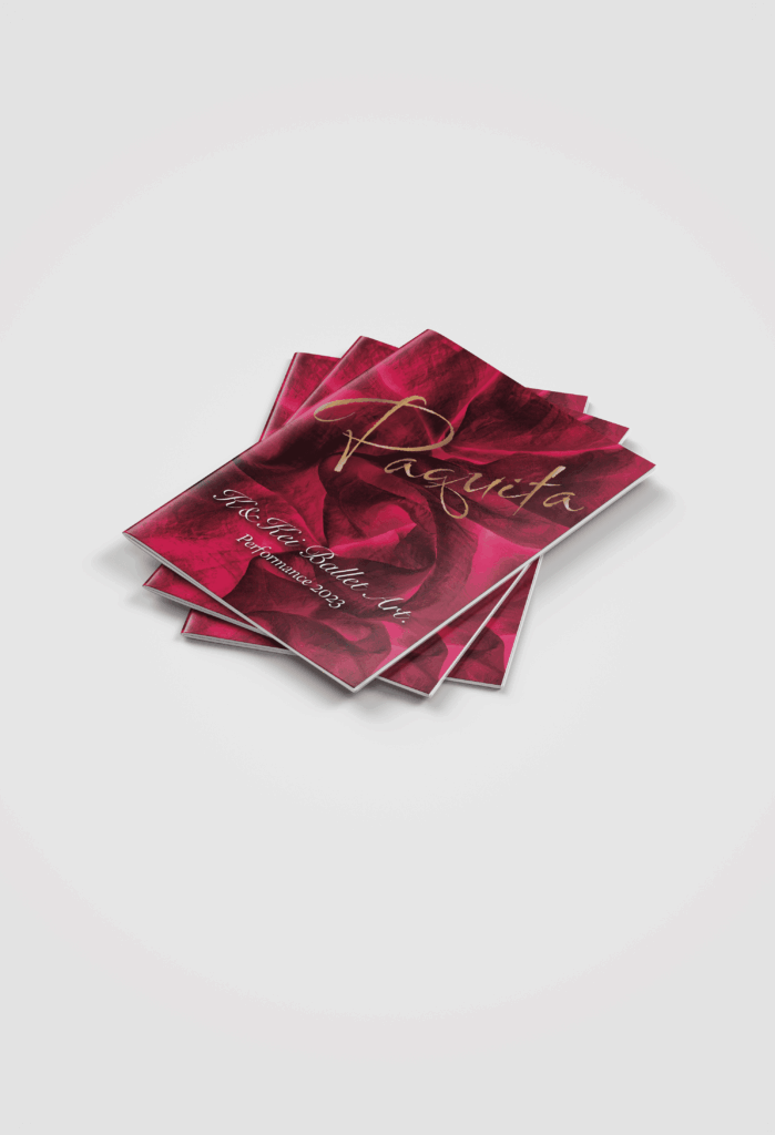 表紙デザインはパキータの衣装・舞台・薔薇の花びらをイメージして、